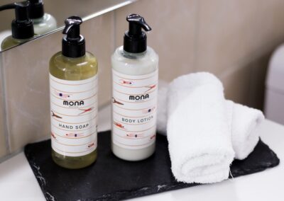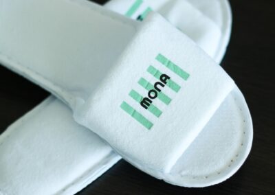 Pour Mona Hotel, nous avons été chargés de concevoir et produire un assortiment d’accessoires de marque destiné à prolonger l’identité de l’hôtel au-delà de la chambre et dans les usages quotidiens des clients. L’objectif était de créer des objets à la fois fonctionnels et mémorables, utilisables pendant le séjour et, pour certains, emportés comme souvenirs discrets de la marque.