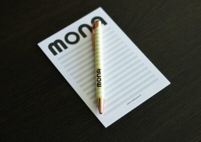 À partir de l’univers de marque de Mona Hotel, nous avons défini une orientation de design axée sur la convivialité, la simplicité et une personnalité discrète mais identifiable. Une attention particulière a été portée aux proportions, aux matériaux, aux couleurs et au positionnement du logo afin que chaque accessoire paraisse pensé avec intention, et non comme un simple objet promotionnel.